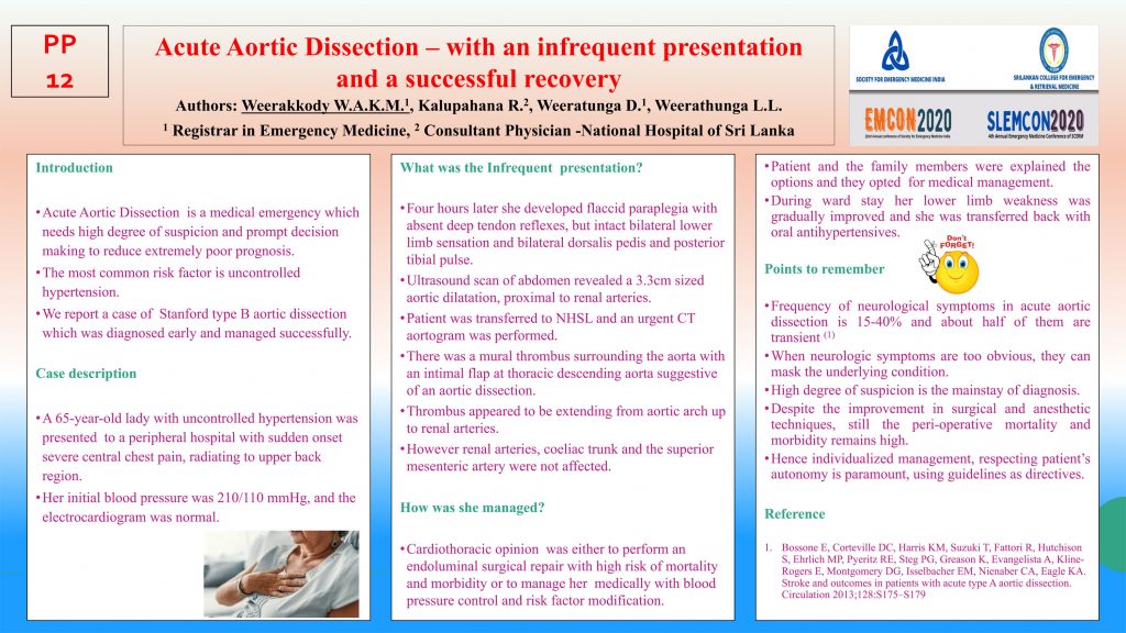 PP12 – Acute Aortic Dissection – with an infrequent presentation and a successful recovery