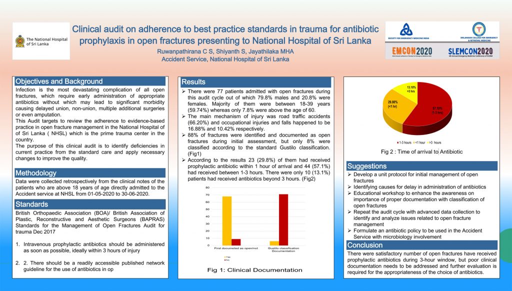 PP3 – Clinical audit on adherence to best practice standards in trauma for antibiotic prophylaxis in open fractures presenting to National Hospital of Sri Lanka